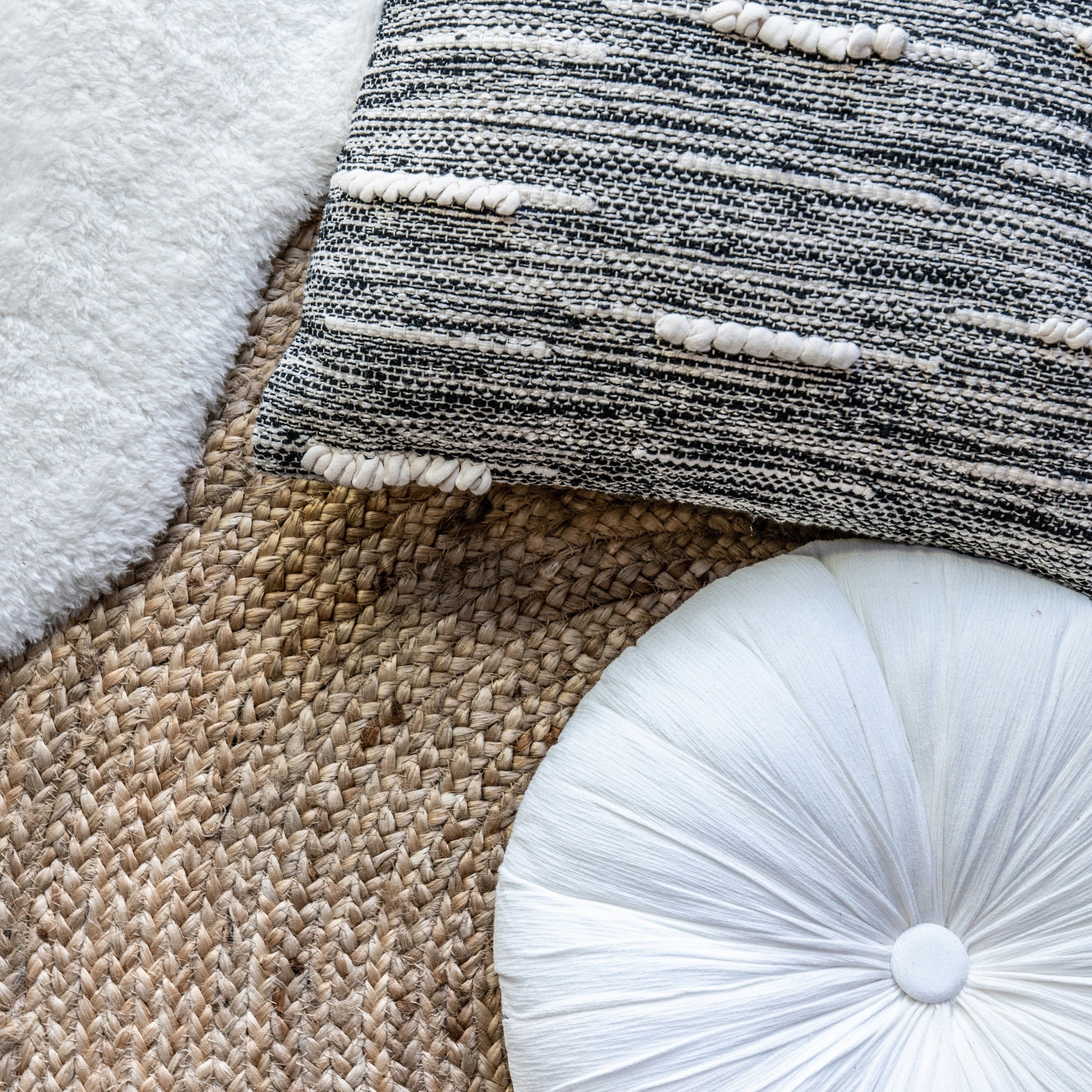 Dekoratives, weiches Kissen mit geometrischem Muster in Elfenbein und weißer Farbe